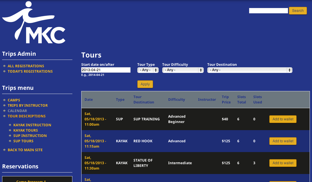 Marketing and e-commerce site for sports club. Visitors may register for a class and pay online; inventory system ensures classes are not over-booked.